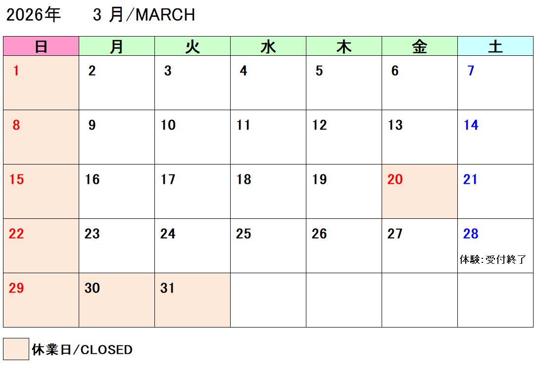 担当者との打ち合わせが完了しましたら、体験日が正式に確定となります。